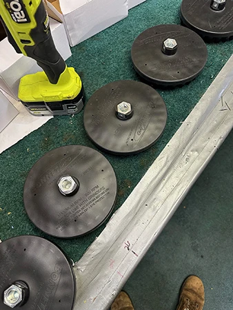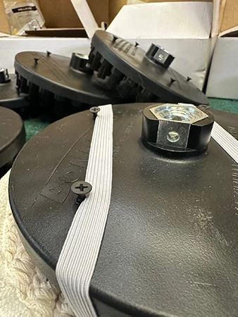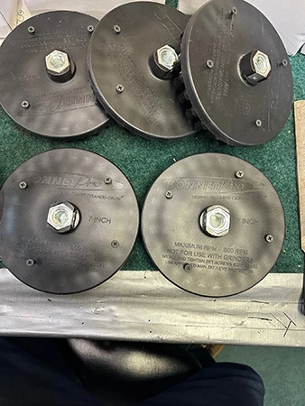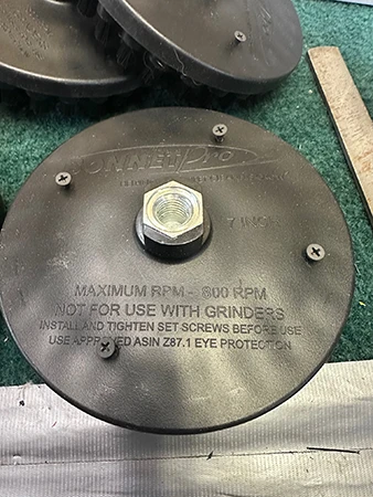 Micro Max’s multiple rows of bristles, designed to gently hold your 8” IronMan bonnet with easy release that does not damage the bonnet. The two elastic straps hold it securely during use for vertical and horizontal surfaces, Micro Max is a game changer. Velcro-type pad drives can damage your pads but our new and better designed Micro Max Drive will not!
